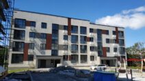 Фасад жилого дома – навесной вентилируемый, облицован качественными фиброцементными панелями благородных оттенков ведущего японского производителя с витражным остеклением на каждом этаже. Окна оборудованы двухкамерными стеклопакетами в ПВХ профилях.